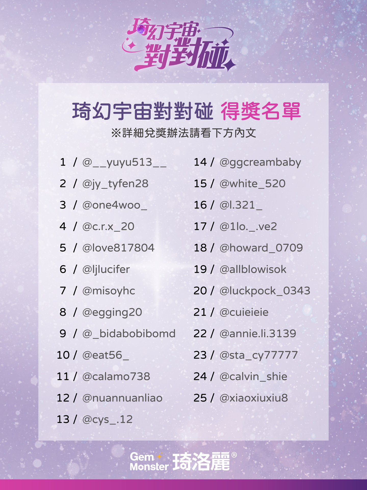 - 獎品寄送:獎品將於得獎者完成兌獎手續後,統一進行寄送。寄送地址限台澎金馬地區。